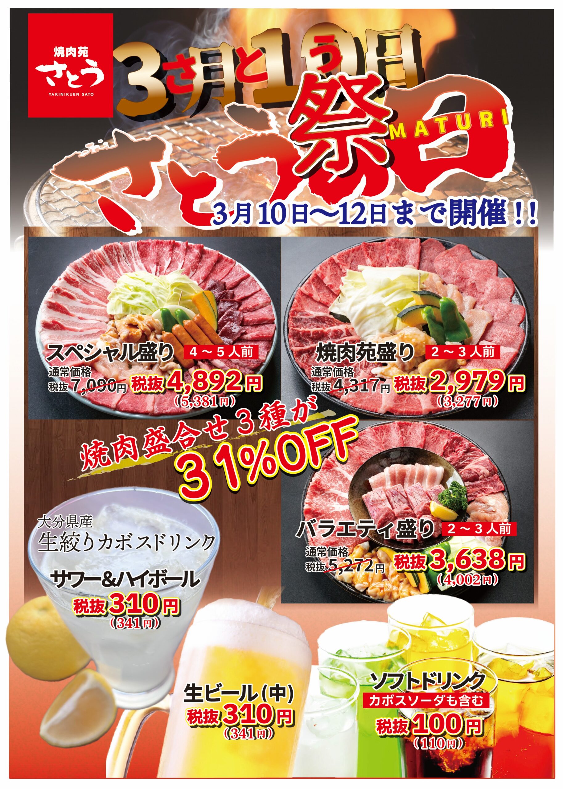 ※焼肉盛合せ3種が31%OFF!! 31%OFF!!!