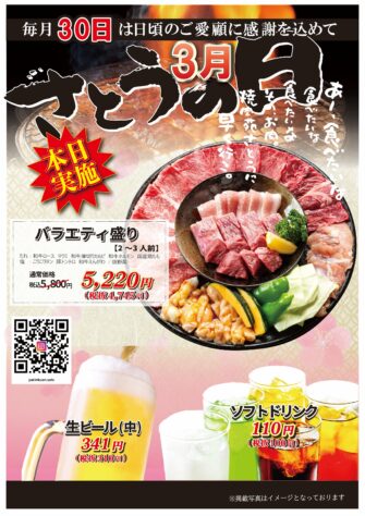 本日30日は、毎月恒例のさとうの日です。